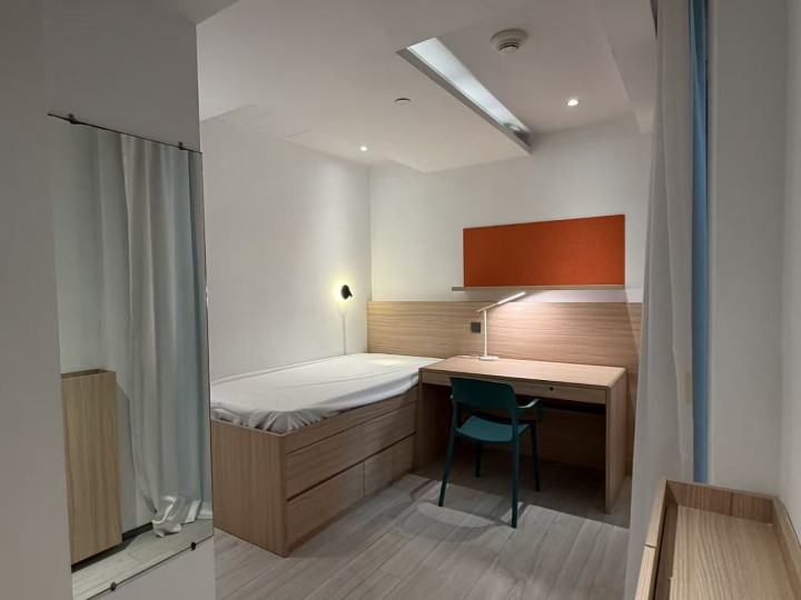 Y83内的一间单人房,配有家具和家电,学生可“拎包入住”图片